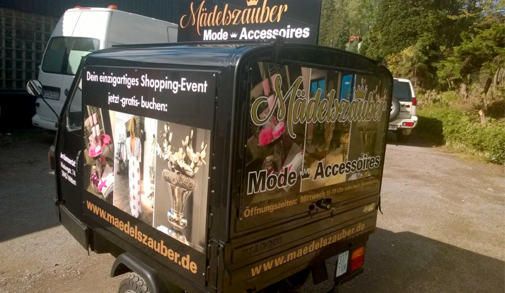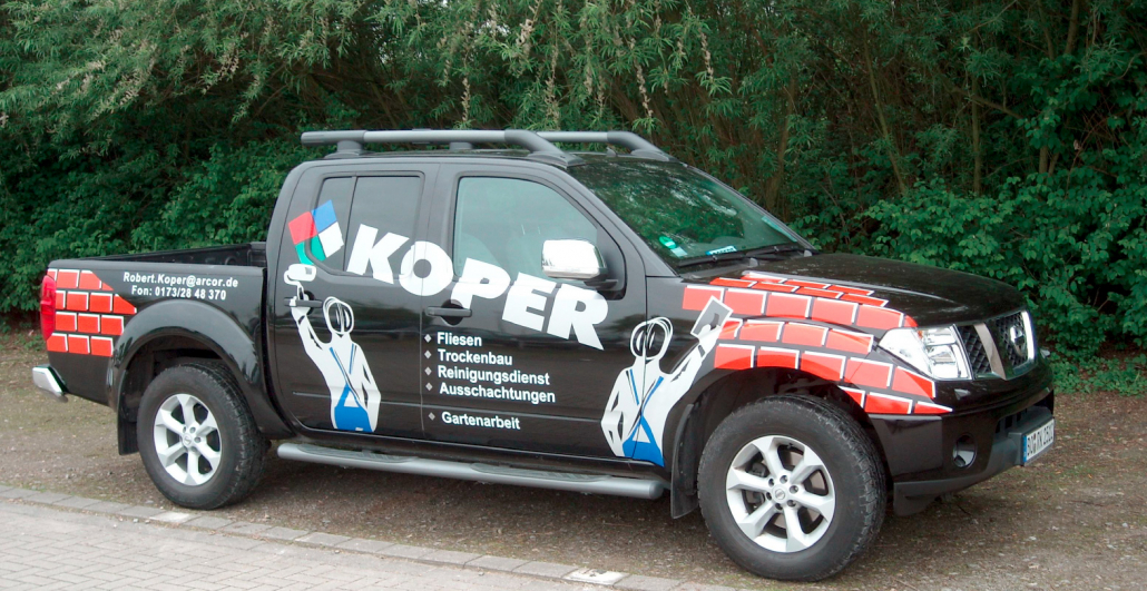 Sie erhalten die Fahrzeugbeschriftung als computergeschnittene Folie, Digital Print oder Lackiert. Auch Kleinaufkleber, individuelle Schriftzüge sowie Fahrzuegdesign (z.B. Tribals) gehören zu unserem Leistungsspektrum. Die relativ niedrigen Kosten stehen in keinem Verhältnis zu der riesigen Werbewirkung.