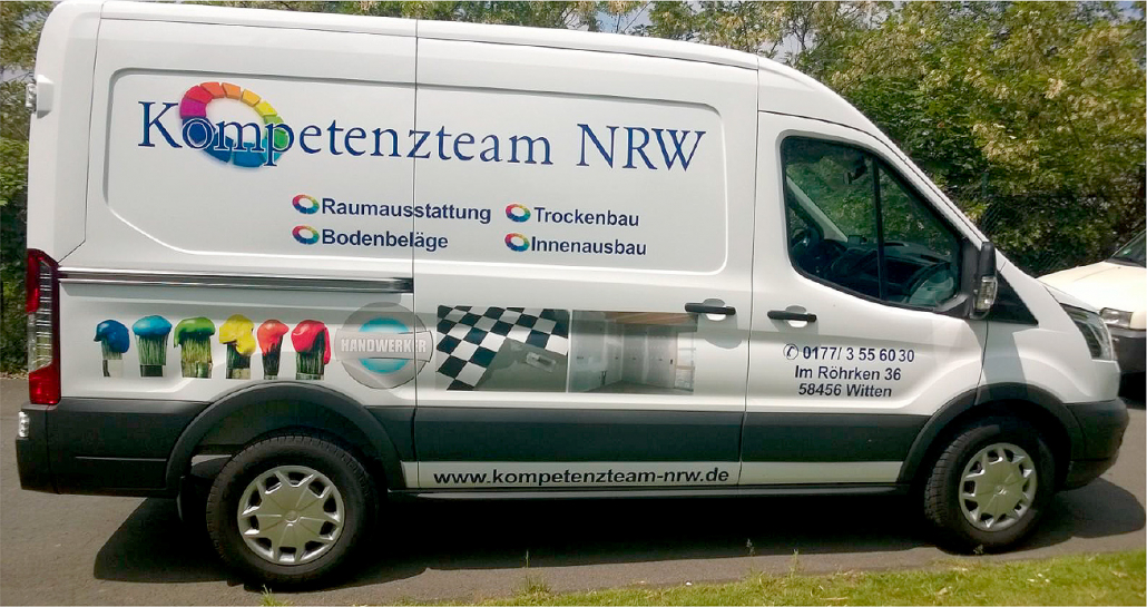 Individuelle Fahrzeugbeschriftung und Fahrzeugbeklebung von einfacher Beschriftung wie Folien- bis hin zur Vollverklebung (Wrapping). In Sachen Folierung und Beklebung sind wir Ihr Full-Service-Partner aus Witten.