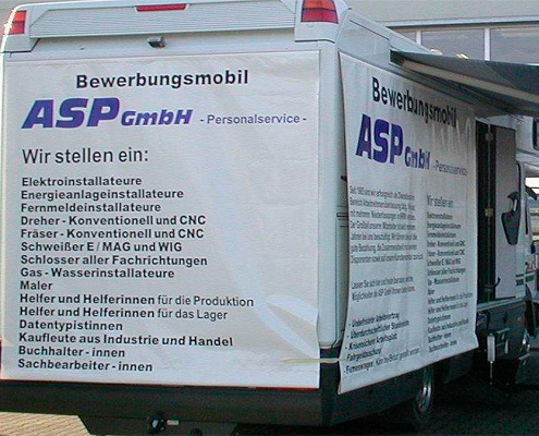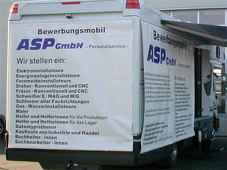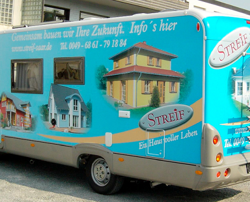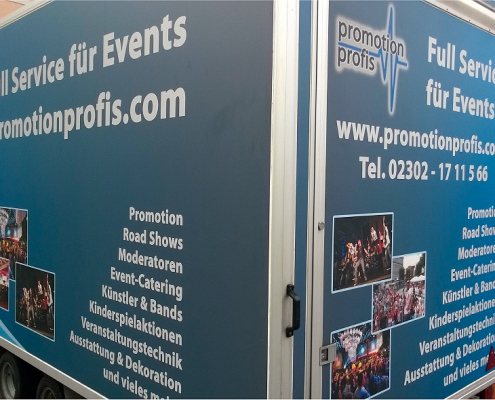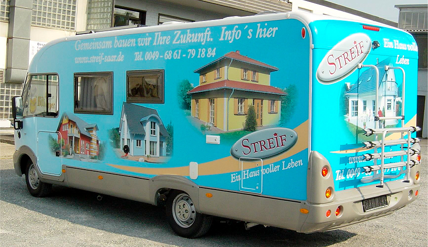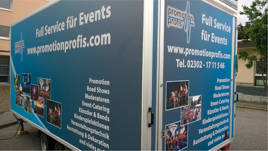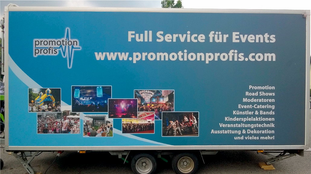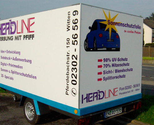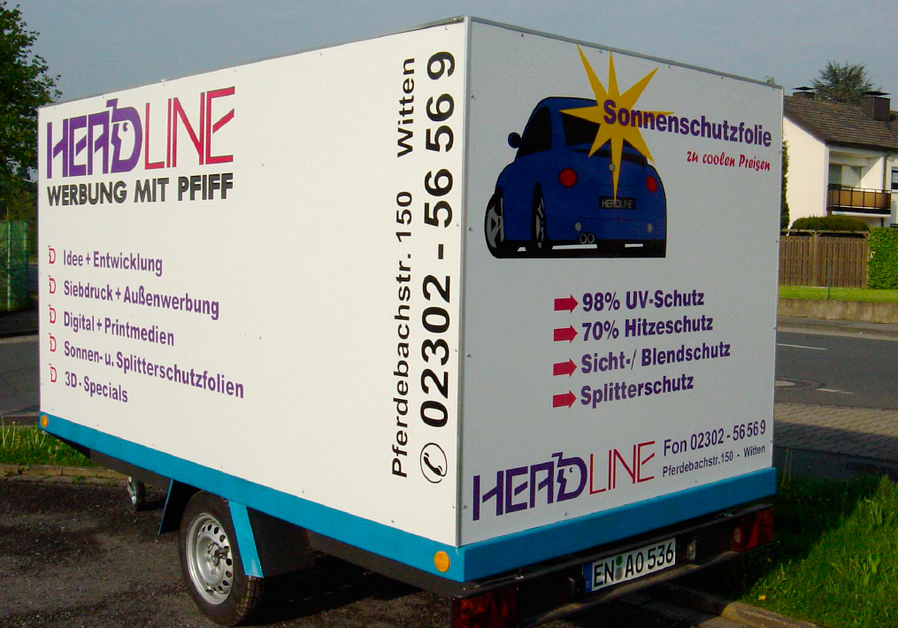 Fahrzeug- und Anhängerbeschriftung ist eine der effektivsten und wirksamsten Formen der Werbung. Laut Fachzeitschriften wird ein Fahrzeug tausendfach in einem Jahr wahrgenommen. Variierend von einer einfachen Beschriftung bis hin zu sehr umfangreichen full color.